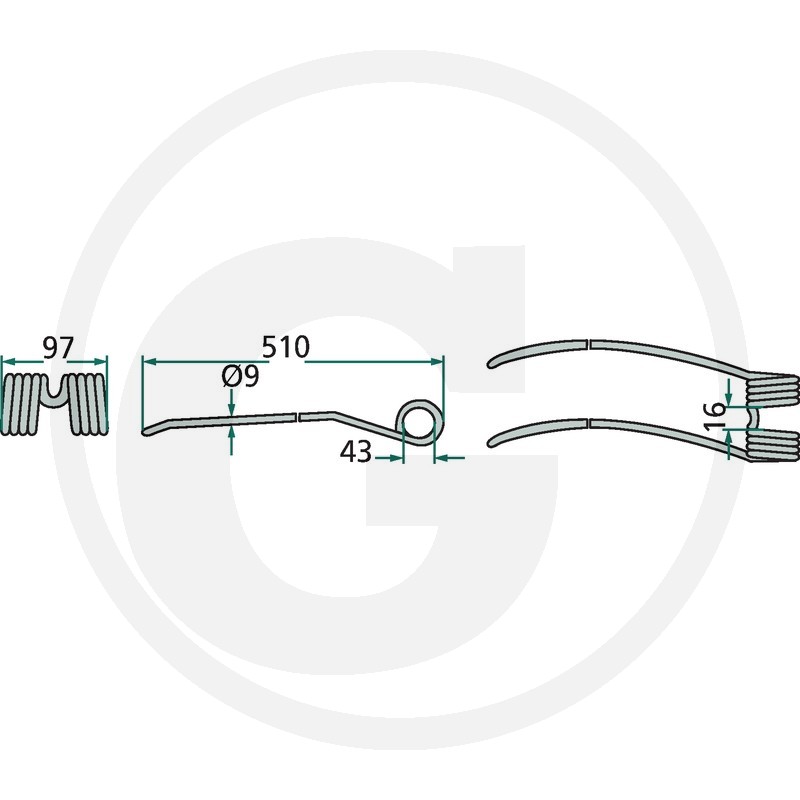 Rotējošā grābekļa zars, 510x97 Ø9 mm