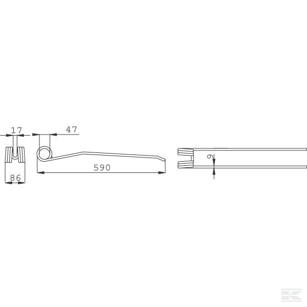 Rotējošā grābekļa zars, 590x86 Ø9 mm