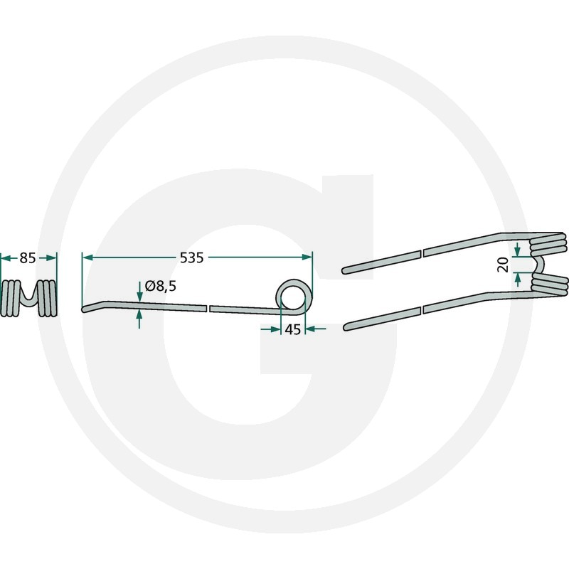 Rotējošā grābekļa zars,535x85 Ø8,5 mm