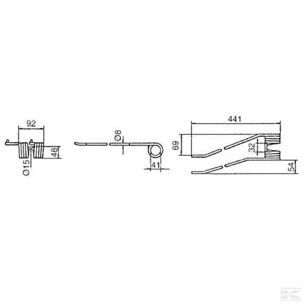 Rotējošā grābekļa zars,441x92 Ø8 mm