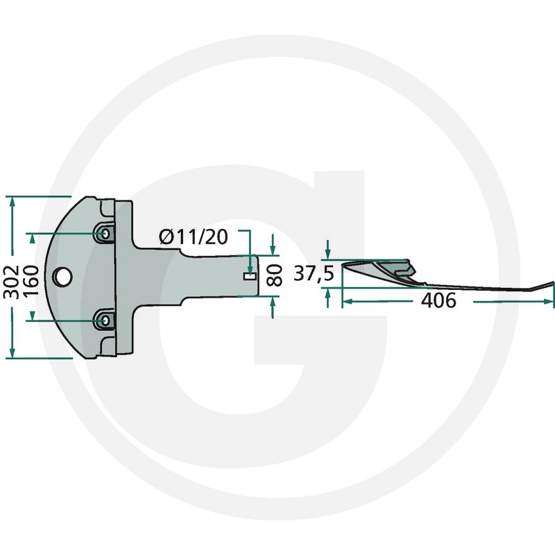 Pļaujmašīnas pēda, 406x302x37,5 mm