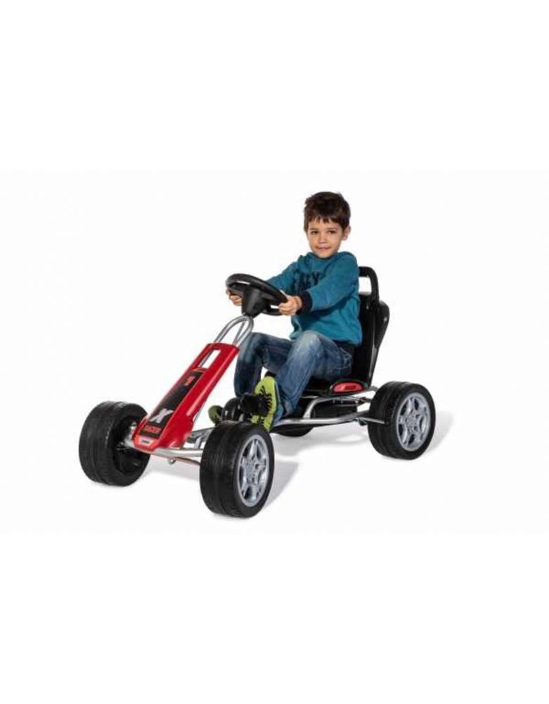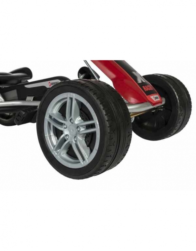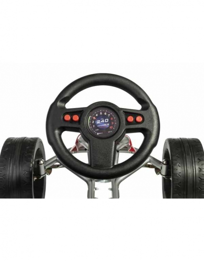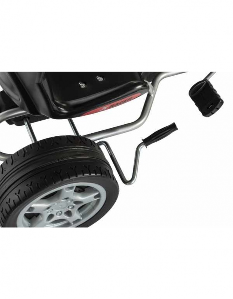 - Šis gokarts ir bez pneimatiskajām riepām, taču tā priekšrocība ir vieglāka pedāļu mīšana. Turklāt tie neprasa biežas apkopes