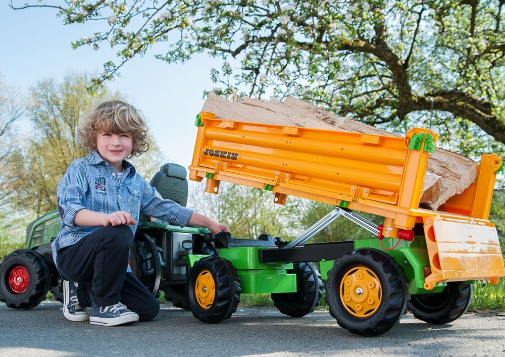 Rotaļu rollyMulti Trailer Joskin divasu piekabe, kuru var pievienot pie traktoriņa
