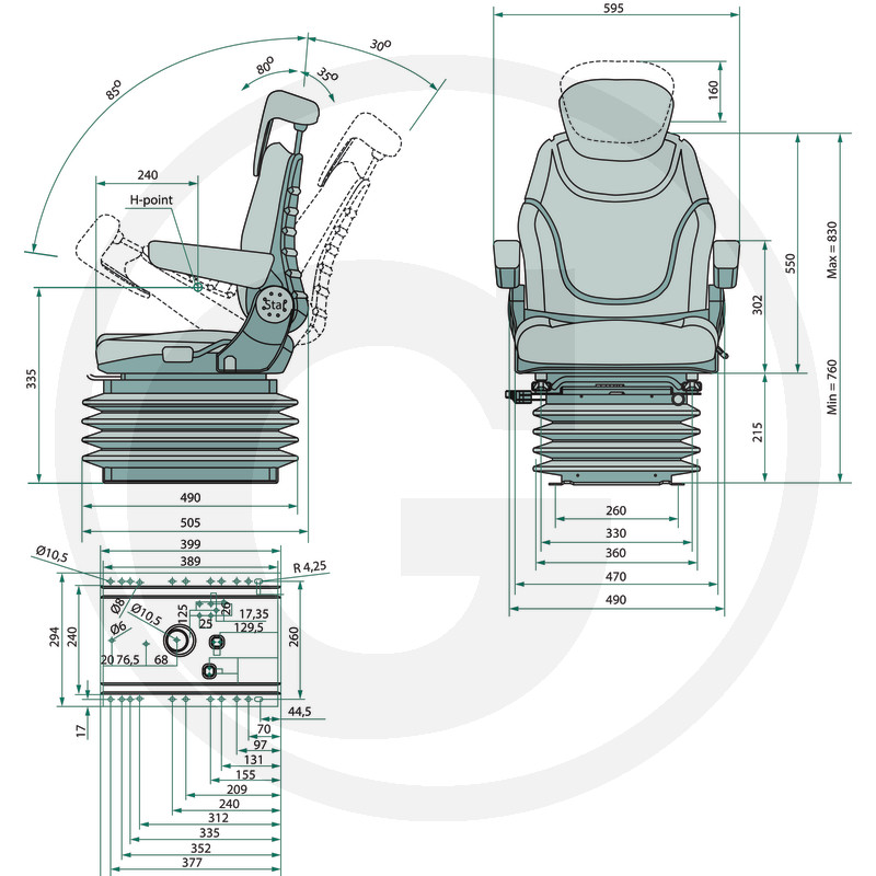 ● Regulēšana garenvirzienā 190 mm