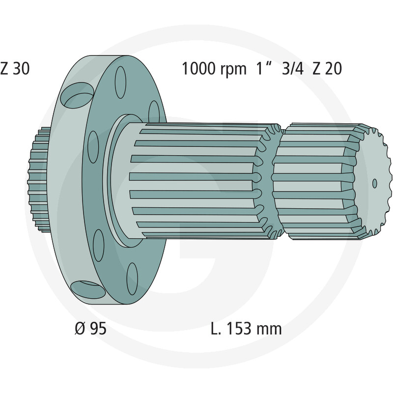 Jūgvārpstas gals 1 3/4'', 20 šlices Fendt, Massey Ferguson