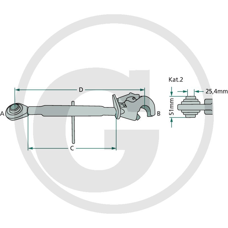 3. punkta atsaite ar āķi, M36 x 3 , Cat. 2 - 3